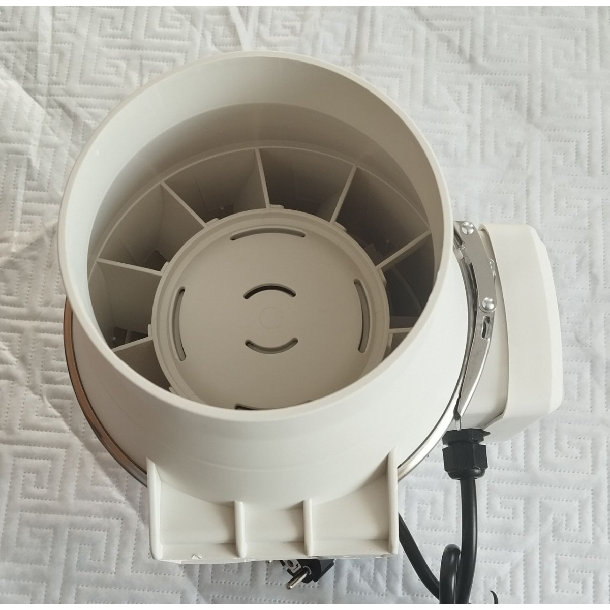Продуктивність вентилятора, згідно з вимірами, склала приблизно 480m3/h при напрузі в мережі 195-200V (дивіться відео роботи вентилятора).